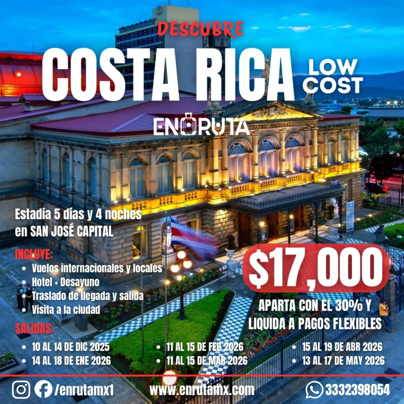 * Pasos: Contacta por WhatsApp, indica que quieres el paquete Costa Rica Low Cost, solicita un plan de pagos a la medida, recibe formulario y paga el enganche.