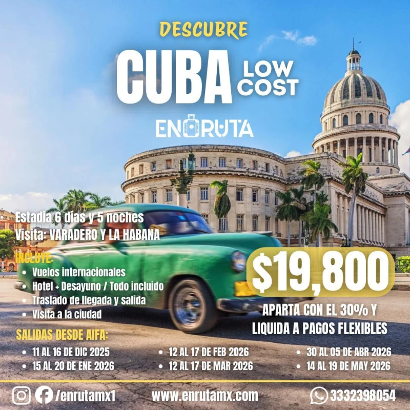 * Pasos: Contáctanos por WhatsApp 33 3239 8054 o aprieta el boton de "contactanos" indica que quieres el paquete Cuba Low Cost, recibe formulario y enlace de pago.