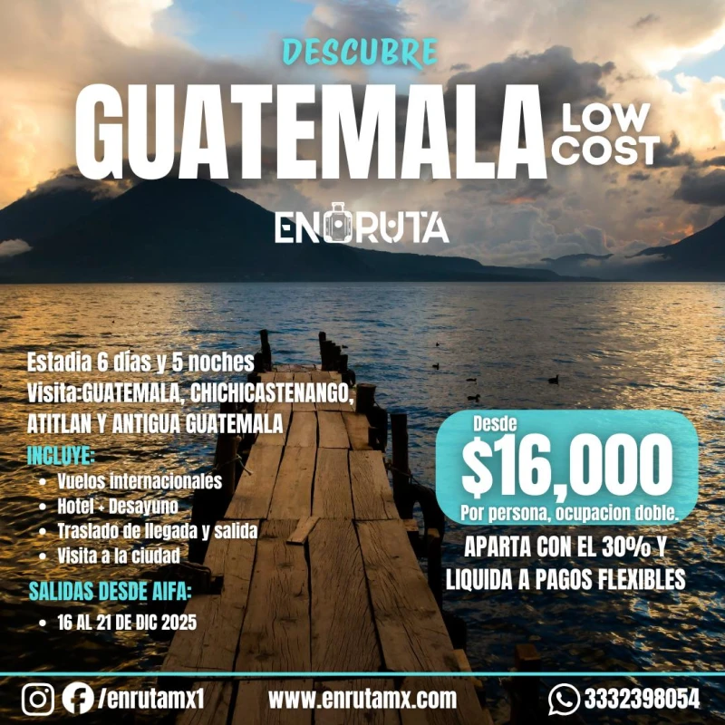 * Pasos: Contacta por WhatsApp, indica que quieres el paquete Guatemala Low Cost, solicita un plan de pagos a la medida, recibe formulario y paga el enganche.