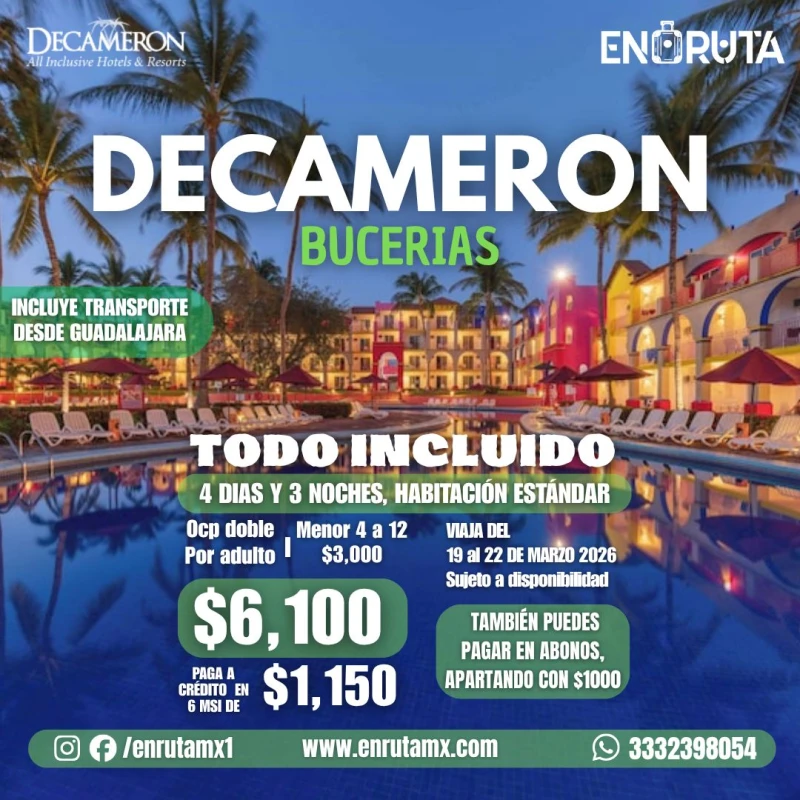 * Pasos: Contáctanos por WhatsApp 33 3239 8054, indica que quieres el paquete Grand Decameron Bucerias, recibe formulario y enlace de pago.
